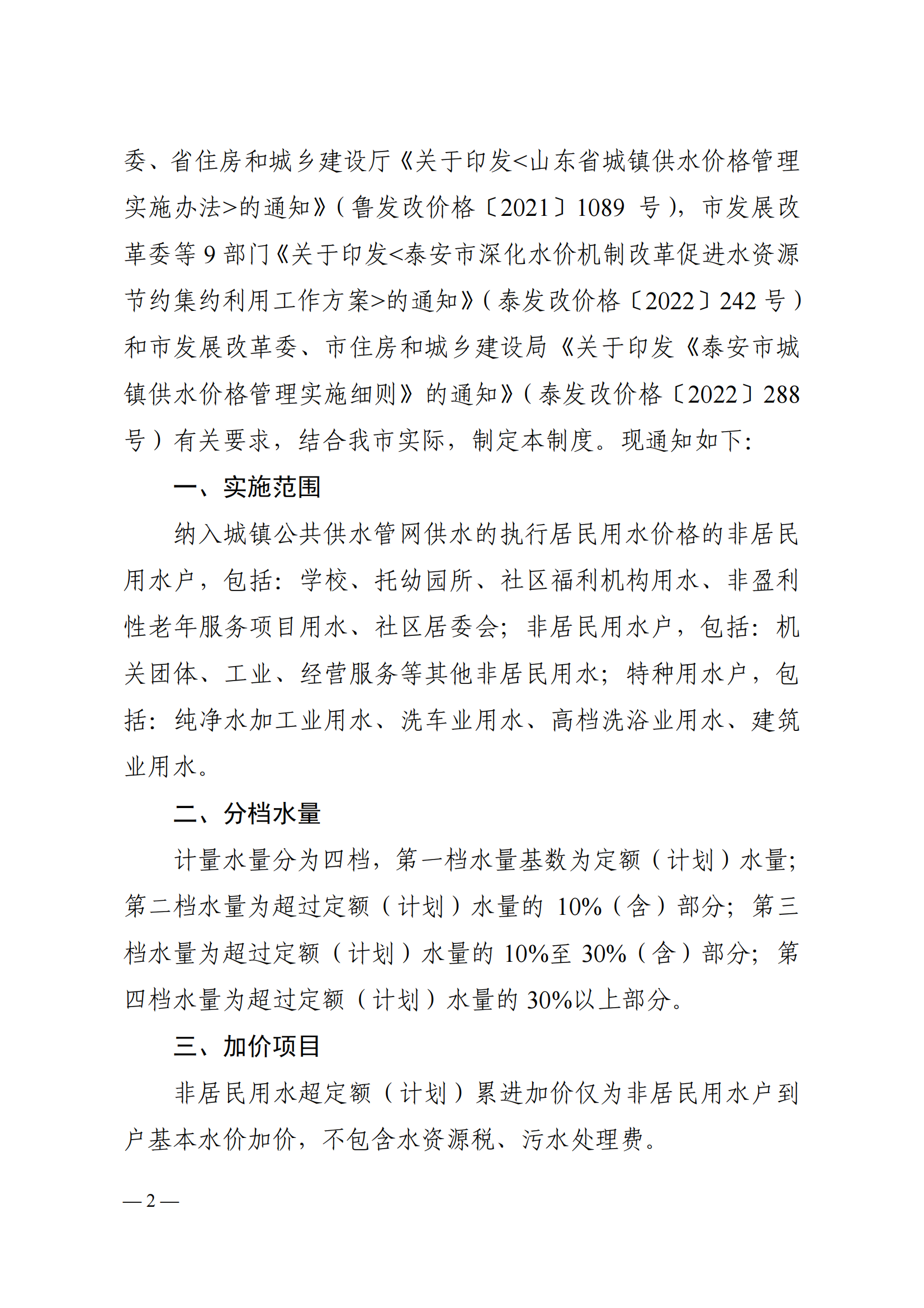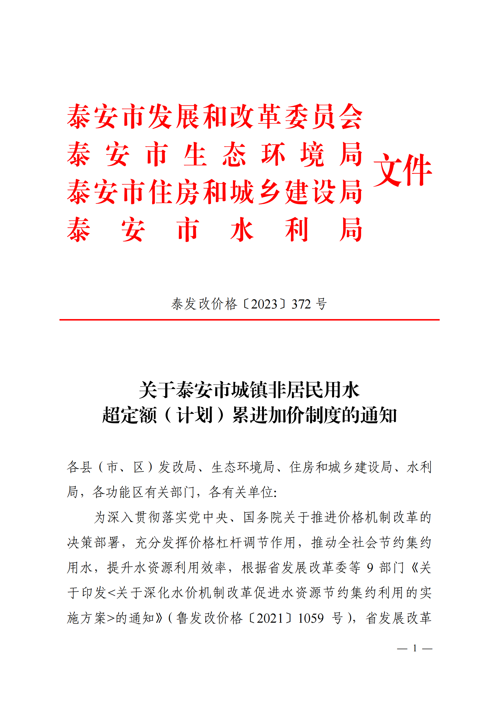 關于泰安市城鎮(zhèn)非居民用水超定額(計劃)累進加價制度的通知