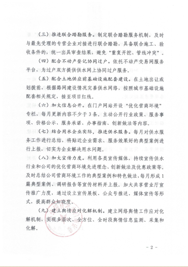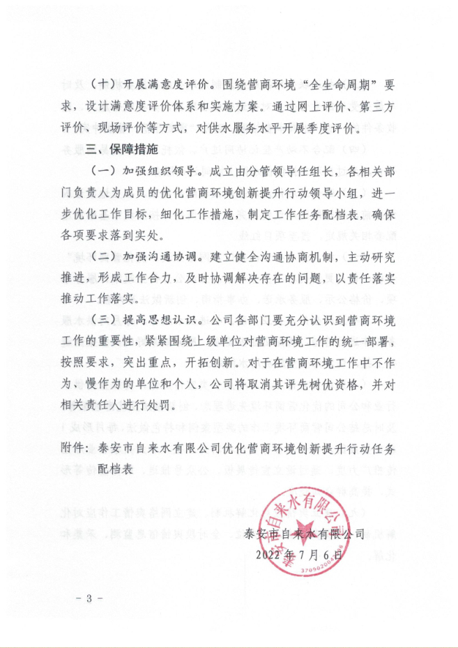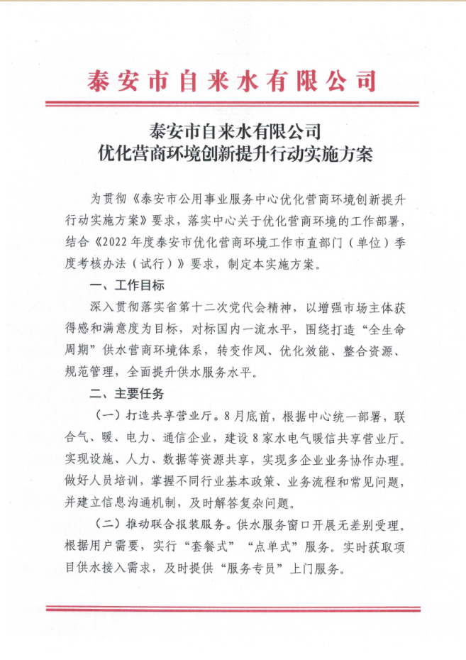 您當(dāng)前位置》政策法規(guī)》泰安市自來水有限公司優(yōu)化營(yíng)商環(huán)境創(chuàng)新提升行動(dòng)實(shí)施方案